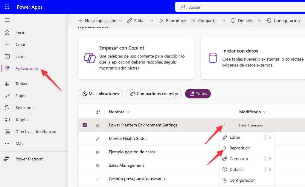Vamos a dar unos minutos para que se instale la solución y, una vez instalada, debemos indicar cuáles son los entornos de origen y cuáles son los de destino. Para ello vamos a ir al portal de creación de Power Apps y vamos a ver una aplicación como esta la cual vamos a reproducir: